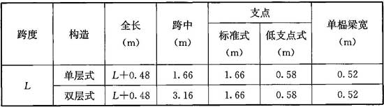 B.0.3 六四式軍用梁適用跨度的范圍及裝配尺寸應(yīng)按表B.0.3取用。