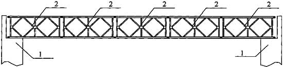 1 貝雷片為桁架式構(gòu)件單元,由上、下弦桿、豎桿及斜桿焊接而成(圖A.0.2-1),應(yīng)作為貝雷梁架設(shè)的主梁使用(圖A.0.2-2);