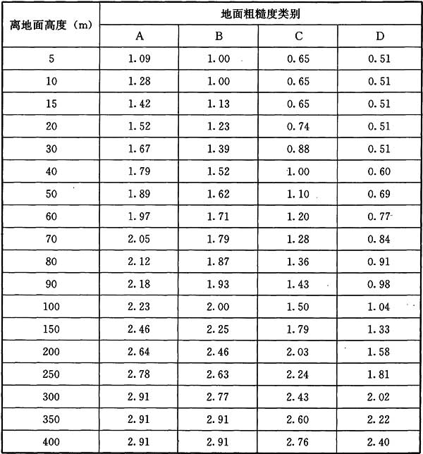 表B.0.1 風(fēng)壓高度變化系數(shù)