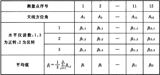 2 應通過程序引導或手動控制天線座方位轉動。根據(jù)設備的方位轉動范圍,應每轉30°停下來,分別記下天線座的方位角Ai和水平儀的讀數(shù)βi,應至少正轉兩次、反轉一次。