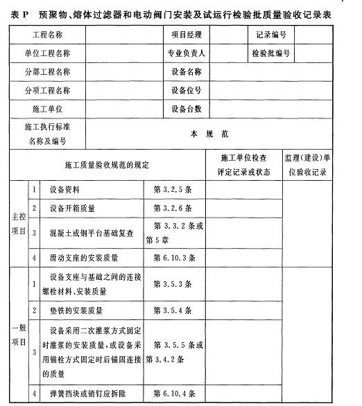 附錄P 預聚物、熔體過濾器和電動閥門安裝及試運行檢驗批質(zhì)量驗收記錄