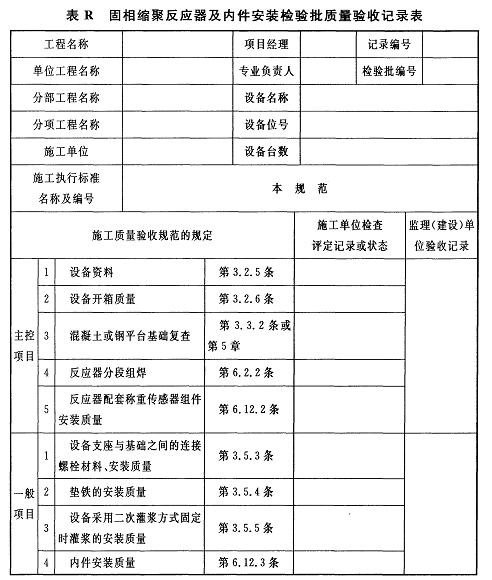 附錄R 固相縮聚反應(yīng)器及內(nèi)件安裝檢驗批質(zhì)量驗收記錄