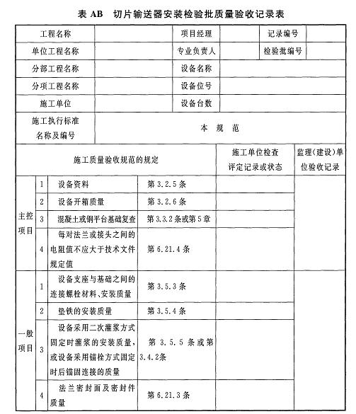 附錄AB切片輸送器安裝檢驗批質(zhì)量驗收記錄