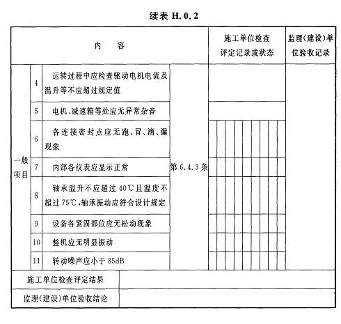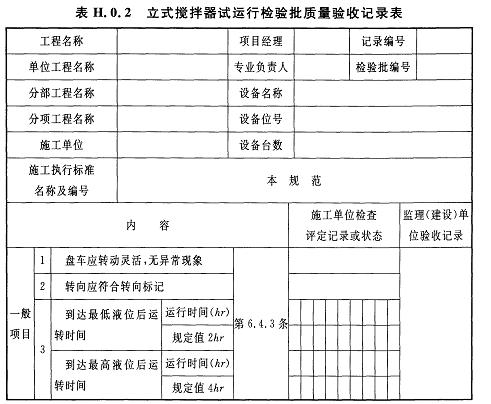 H.0.2立式攪拌器試運行檢驗批質(zhì)量驗收記錄應(yīng)符合表H.0.2的規(guī)定。