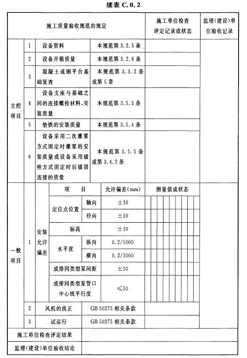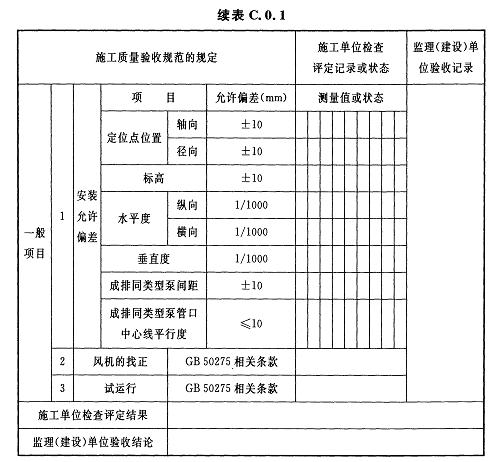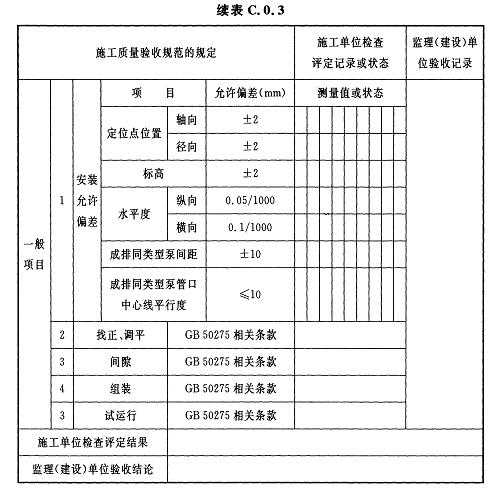 C.0.3離心鼓風機安裝及試運行檢驗批質(zhì)量驗收記錄應(yīng)符合表C.0.3的規(guī)定。