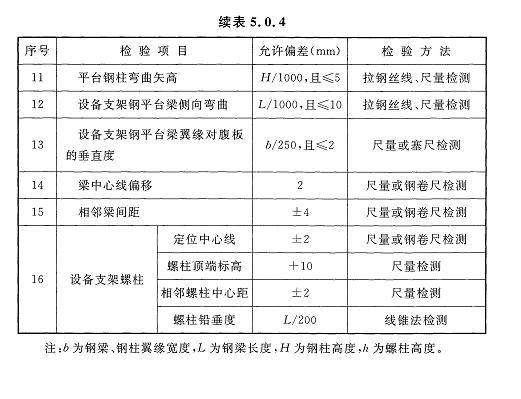 5.0.4設(shè)備支架鋼平臺安裝允許偏差和檢驗方法應(yīng)符合表5.0.4的規(guī)定。