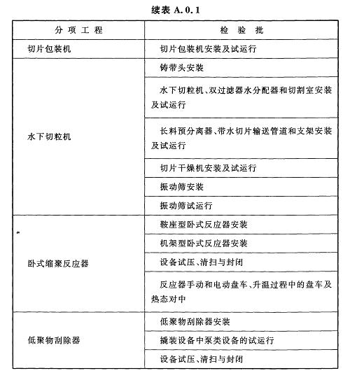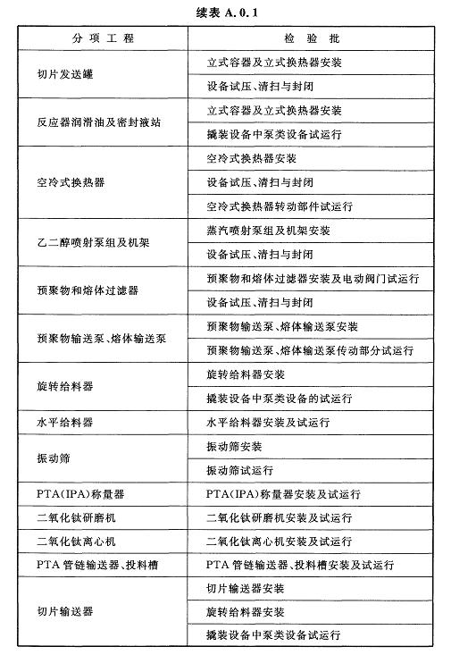 附錄A 聚酯及固相縮聚設(shè)備工程安裝分項工程和檢驗批