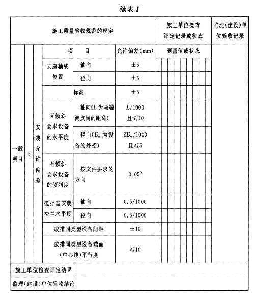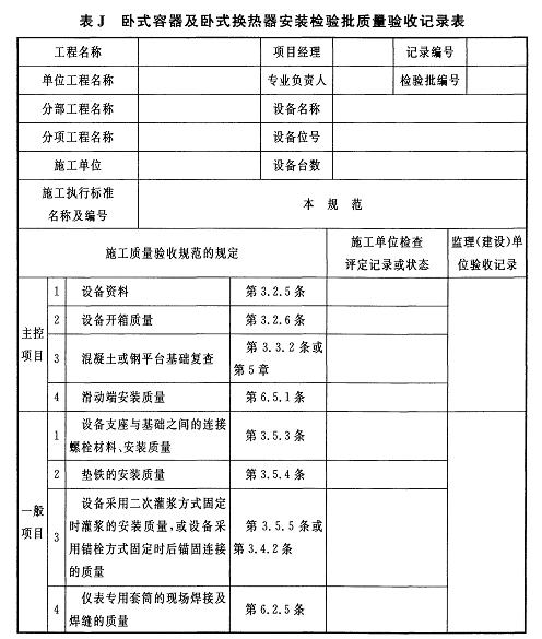 附錄J 臥式容器及臥式換熱器安裝檢驗批質(zhì)量驗收記錄