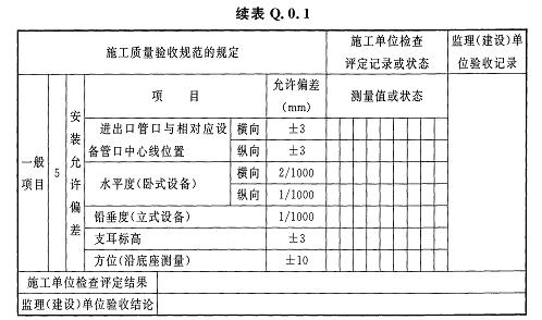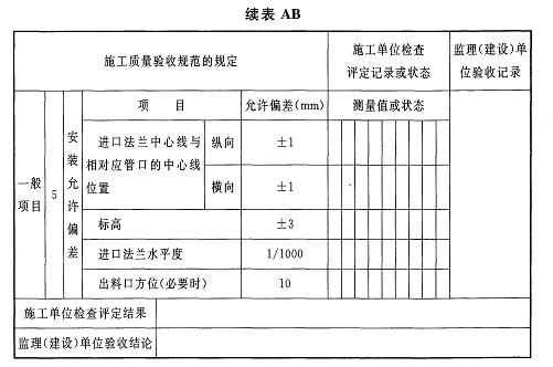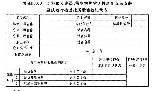 AD.0.3長料預分離器、帶水切片輸送管道和支架安裝及試運行檢驗批質(zhì)量驗收記錄應(yīng)符合表AD.0.3的規(guī)定。