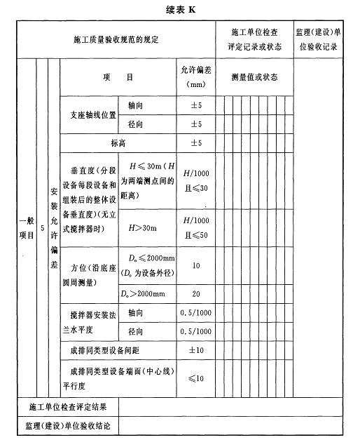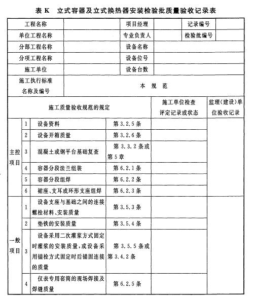 附錄K 立式容器及立式換熱器安裝檢驗批質(zhì)量驗收記錄