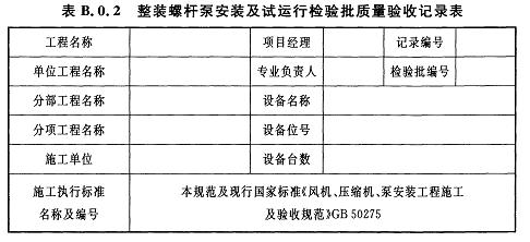 B.0.2整裝螺桿泵安裝及試運行檢驗批質(zhì)量驗收記錄應(yīng)符合表B.0.2的規(guī)定。