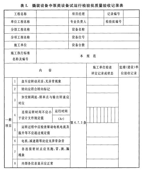 附錄L 撬裝設(shè)備中泵類設(shè)備試運行檢驗批質(zhì)量驗收記錄