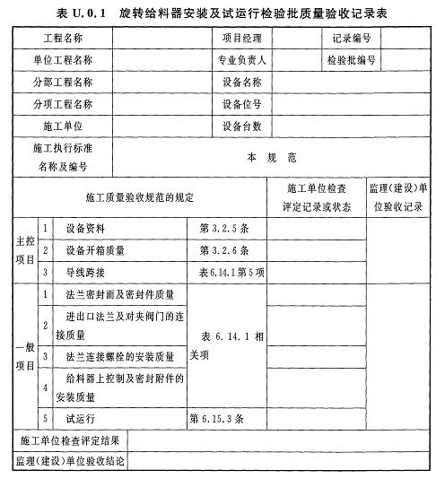 附錄U 給料器安裝及試運行檢驗批質(zhì)量驗收記錄