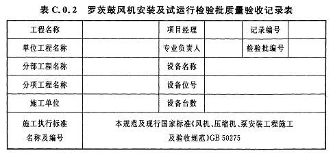 C.0.2羅茨鼓風機安裝及試運行檢驗批質(zhì)量驗收記錄應(yīng)符合表C.0.2的規(guī)定。