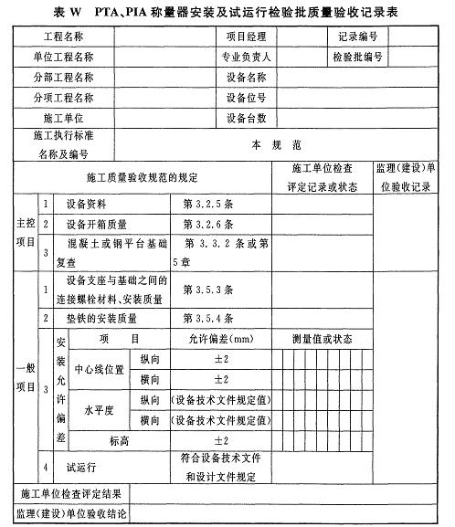 附錄W PTA、PIA稱量器安裝及試運行檢驗批質(zhì)量驗收記錄