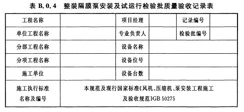B.0.4整裝隔膜泵安裝及試運行檢驗批質(zhì)量驗收記錄應(yīng)符合表B.0.4的規(guī)定。