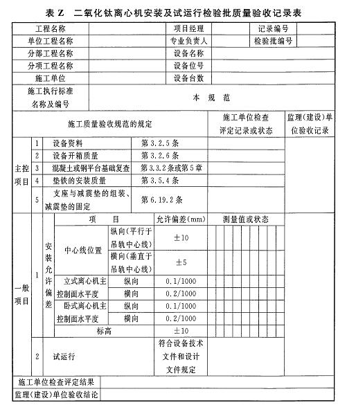 附錄Z二氧化鈦離心機安裝及試運行檢驗批質(zhì)量驗收記錄