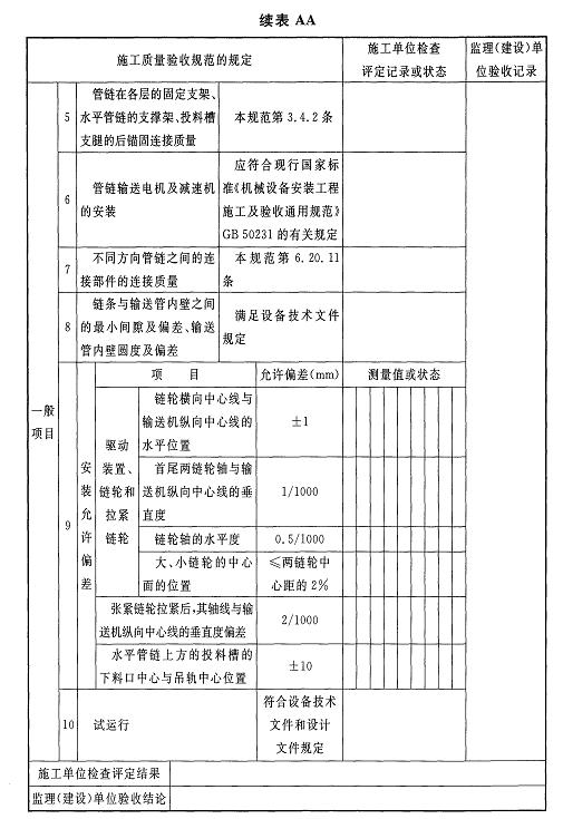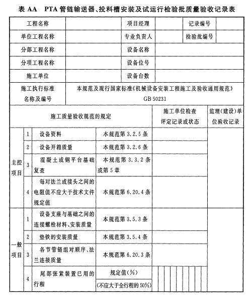 附錄AAPTA管鏈輸送器、投料槽安裝及試運行檢驗批質(zhì)量驗收記錄