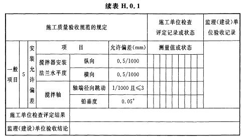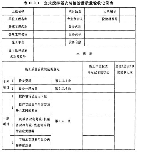 H.0.1立式攪拌器安裝檢驗批質(zhì)量驗收記錄應(yīng)符合表H.0.1的規(guī)定。