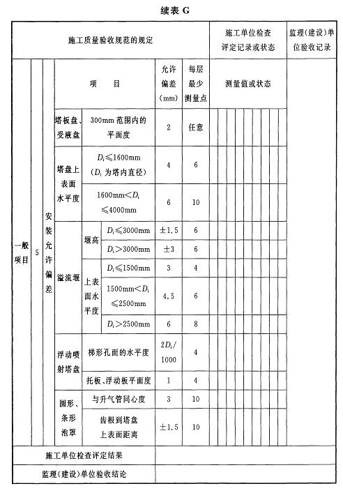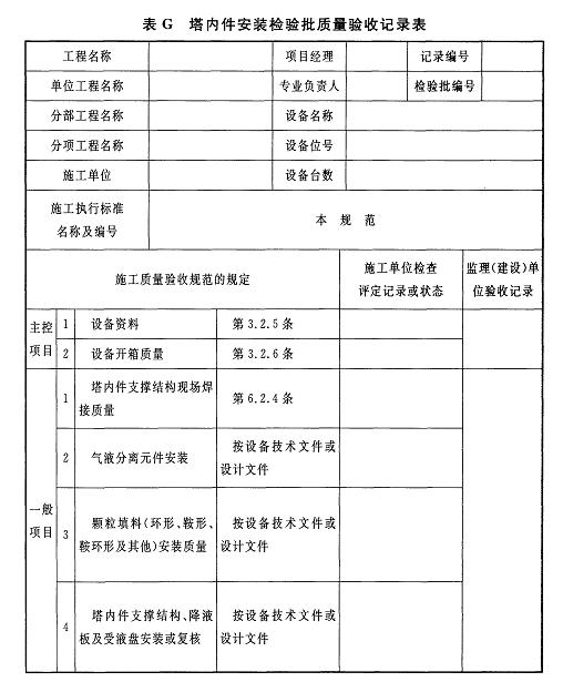 附錄G 塔內(nèi)件安裝檢驗批質(zhì)量驗收記錄