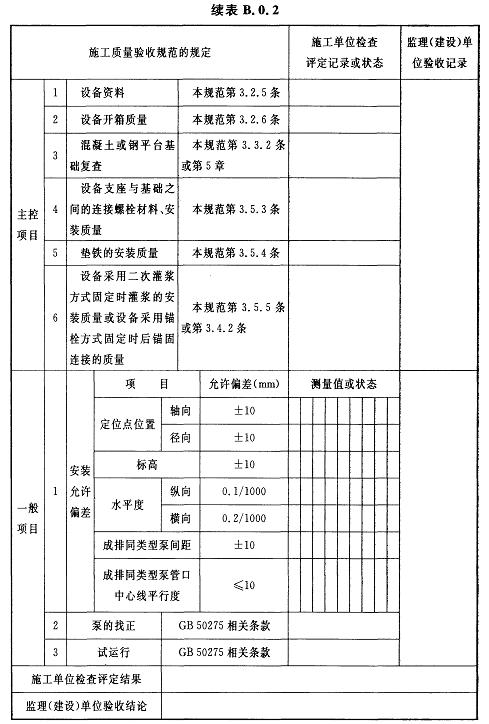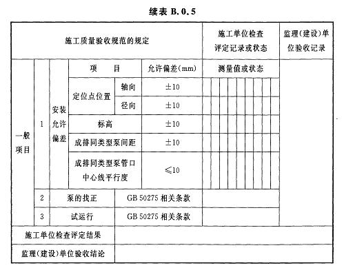 附錄B 泵類設(shè)備安裝及試運行檢驗批質(zhì)量驗收記錄