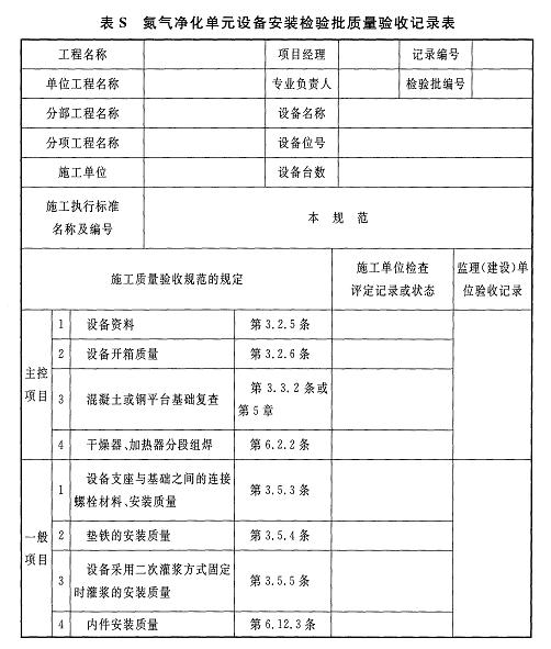 附錄S 氮氣凈化單元設(shè)備安裝檢驗批質(zhì)量驗收記錄