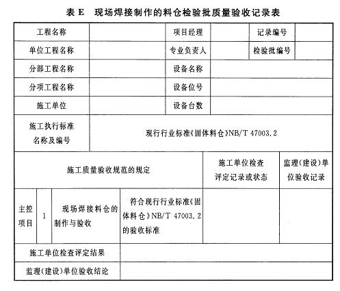 附錄E 現(xiàn)場焊接制作的料倉檢驗批質(zhì)量驗收記錄