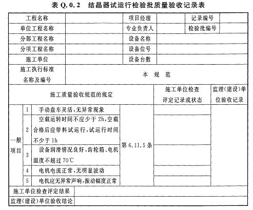 Q.0.2結(jié)晶器試運行檢驗批質(zhì)量驗收記錄應(yīng)符合表Q.0.2的規(guī)定。