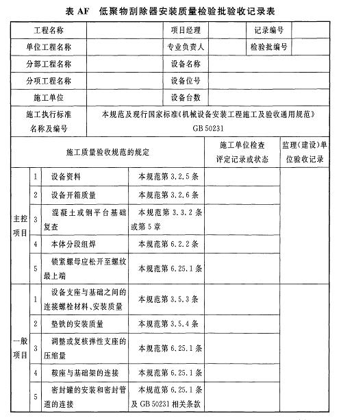 附錄AF低聚物刮除器安裝質(zhì)量驗收記錄