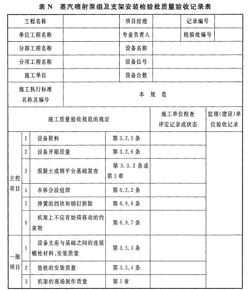 附錄N 蒸汽噴射泵組及支架安裝檢驗批質(zhì)量驗收記錄