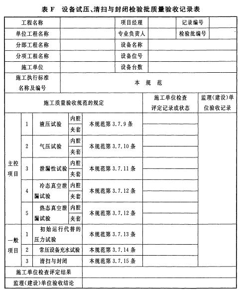 附錄F 設(shè)備試壓、清掃與封閉檢驗批質(zhì)量驗收記錄