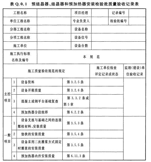 附錄Q 預結(jié)晶器、結(jié)晶器和預加熱器安裝檢驗批質(zhì)量驗收記錄
