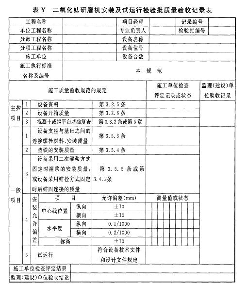 附錄Y二氧化鈦研磨機安裝及試運行檢驗批質(zhì)量驗收記錄