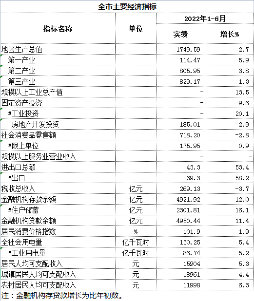 (江蘇?。┧捱w市2022年1-6月全市主要經(jīng)濟(jì)指標(biāo)