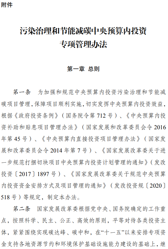 2021年|發(fā)改委:《污染治理和節(jié)能減碳中央預(yù)算內(nèi)投資專(zhuān)項(xiàng)管理辦法》