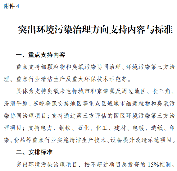 重點(diǎn)支持細(xì)顆粒物和臭氧污染協(xié)同治理、環(huán)境污染第三方治理、重點(diǎn)行業(yè)清潔生產(chǎn)及重大環(huán)保技術(shù)示范等。 具體為支持臭氧未達(dá)標(biāo)城市和京津冀及周邊地區(qū)、長(zhǎng)三角、 汾渭平原、蘇皖魯豫交接地區(qū)等重點(diǎn)區(qū)域城市細(xì)顆粒物和臭氧污染協(xié)同治理項(xiàng)目;支持通過(guò)第三方評(píng)估的園區(qū)環(huán)境污染第三方治理項(xiàng)目;支持電力、鋼鐵、石化、化工、建材、電鍍、造紙、印染、食品等重點(diǎn)行業(yè)實(shí)施清潔生產(chǎn)技術(shù)、設(shè)備提升改造示范項(xiàng)目。
