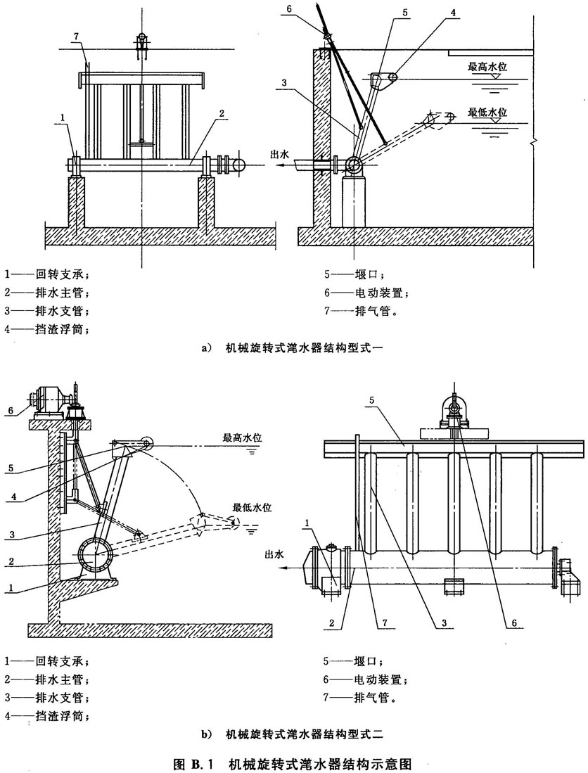 潷水器按其結(jié)構(gòu)形式可分為:機械旋轉(zhuǎn)式、浮筒式和虹吸式。具體分類與型號參見附錄A。