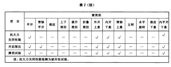 建筑門和窗力學性能檢測項目應分別符合表1和表2的規(guī)定。