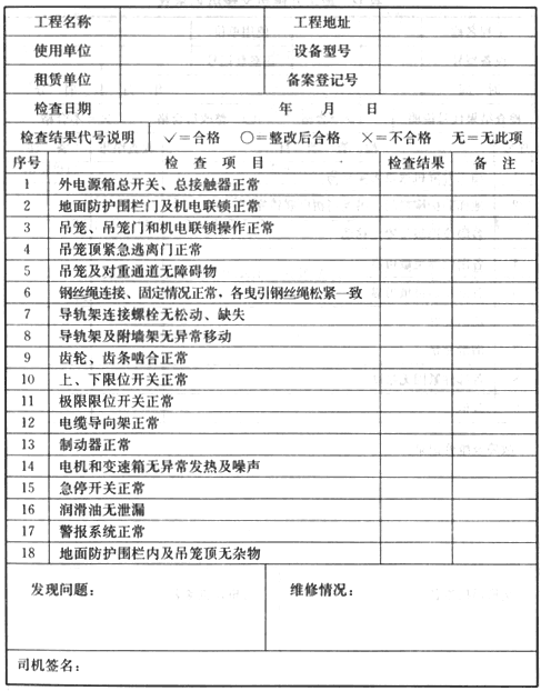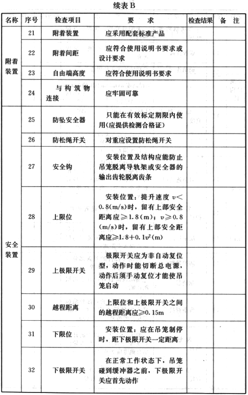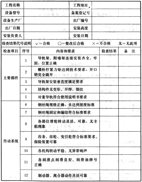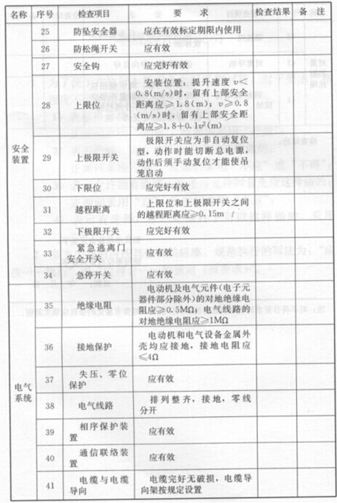 注:1 新安裝的施工升降機及在用的施工升降機應至少每3個月進行一次額定載