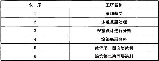 7.0.9 合成樹脂乳液砂壁狀涂料和質(zhì)感涂料的施工工序應(yīng)符合表7.0.9的規(guī)定。