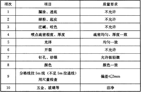 8.0.6 合成樹脂乳液外墻涂料、彈性建筑涂料、溶劑型外墻涂料等外墻平涂涂飾工程的質(zhì)量應(yīng)符合表8.0.6規(guī)定。