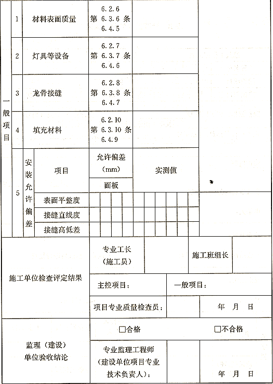 表A 吊頂工程檢驗(yàn)批質(zhì)量驗(yàn)收記錄表