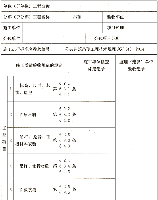 附錄A 吊頂工程檢驗(yàn)批質(zhì)量驗(yàn)收記錄表