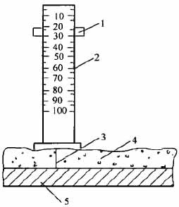 1-標(biāo)尺;2-刻度;3-測針;4-防火涂層;5-基材