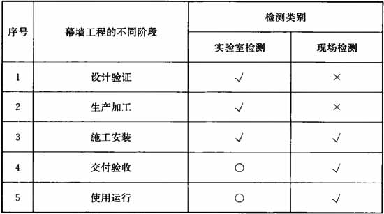 表2.0.1 幕墻工程不同階段適用的檢測類別