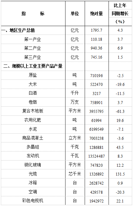 根據(jù)地區(qū)生產(chǎn)總值統(tǒng)一核算結(jié)果,上半年全市實現(xiàn)生產(chǎn)總值1795.7億元,同比增長4.3%。其中,一產(chǎn)增加值110.18億元,同比增長3.7%;二產(chǎn)增加值940.36億元,同比增長6.9%;三產(chǎn)增加值745.16億元,同比增長1.5%。