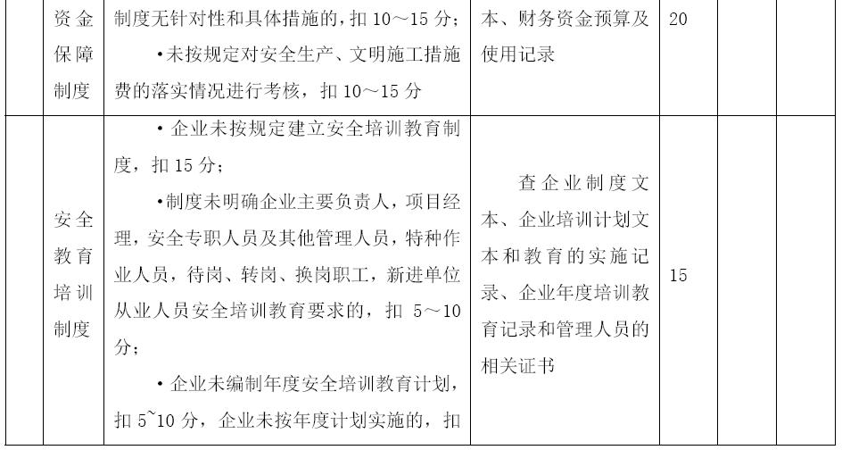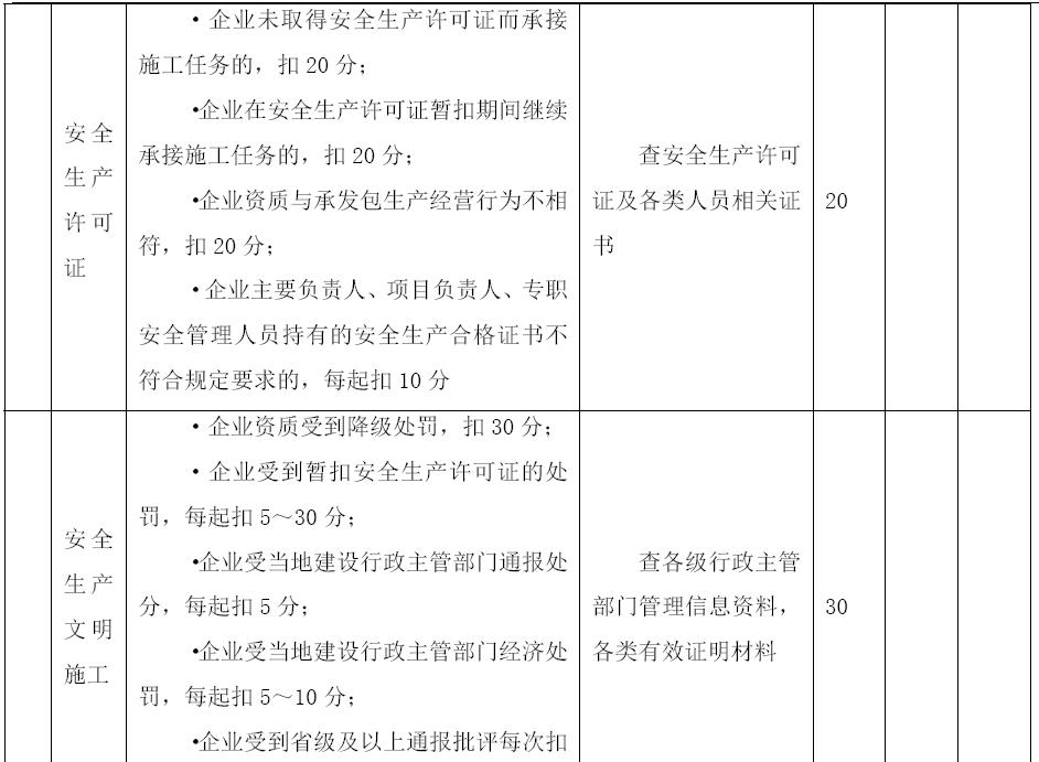 3 施工企業(yè)的安全生產(chǎn)情況應(yīng)依據(jù)自評(píng)價(jià)之月起前12個(gè)月以來的情況,施工現(xiàn)場應(yīng)依據(jù)自開工日起至評(píng)價(jià)時(shí)的安全管理情況;