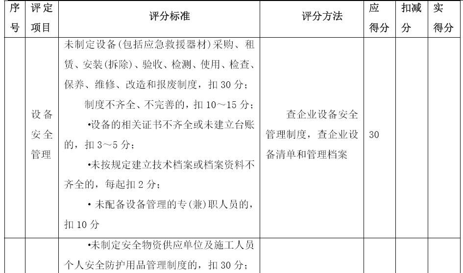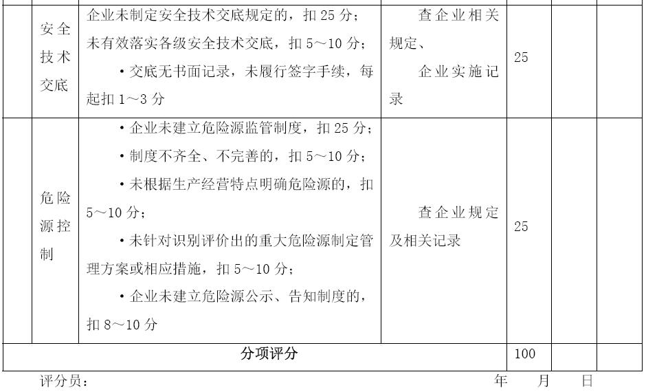 4.0.8 安全生產(chǎn)條件和能力評(píng)分應(yīng)符合下列要求: