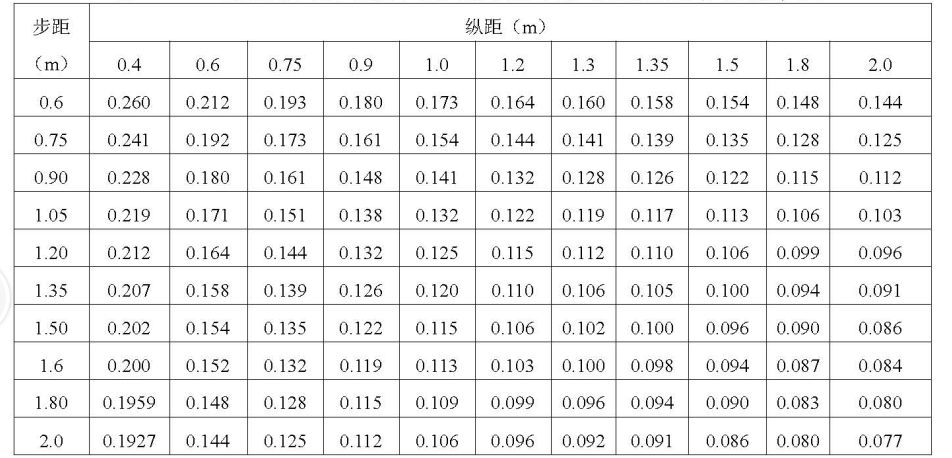 2、立桿間距兩級(jí)之間,縱向間距與橫向間距不同時(shí),計(jì)算長(zhǎng)度系數(shù)按較大間距對(duì)應(yīng)的計(jì)算長(zhǎng)度系數(shù)取值。立桿間距兩級(jí)之間值,計(jì)算長(zhǎng)度系數(shù)取兩級(jí)對(duì)應(yīng)的較大的μ值。要求高寬比相同。