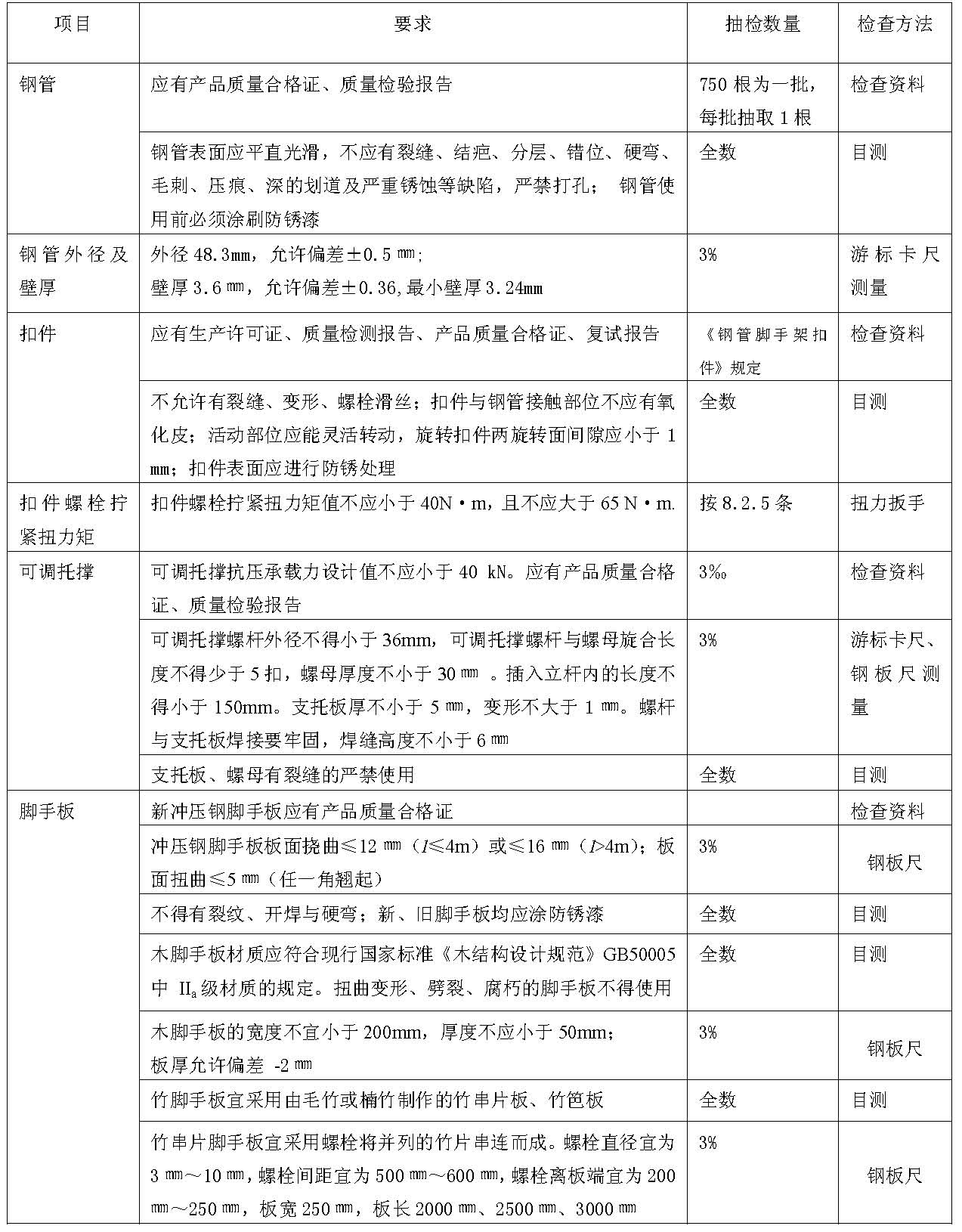 9.0.3 腳手架的構(gòu)配件質(zhì)量與搭設(shè)質(zhì)量,應(yīng)按本規(guī)范第8章的規(guī)定進(jìn)行檢查驗(yàn)收,并應(yīng)確認(rèn)合格后使用。